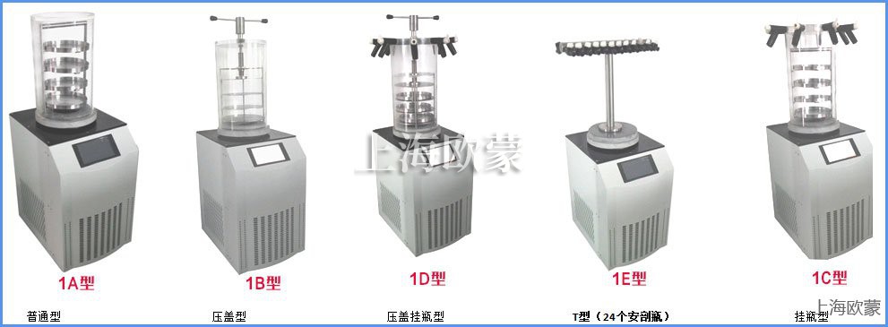冷凍干燥機(jī)規(guī)格:FD-1A-50普通型、FD-1B-50壓蓋型、FD-1C-50多歧管普通型、FD-1D-50多歧管壓蓋型、FD-1E-50 T 型架